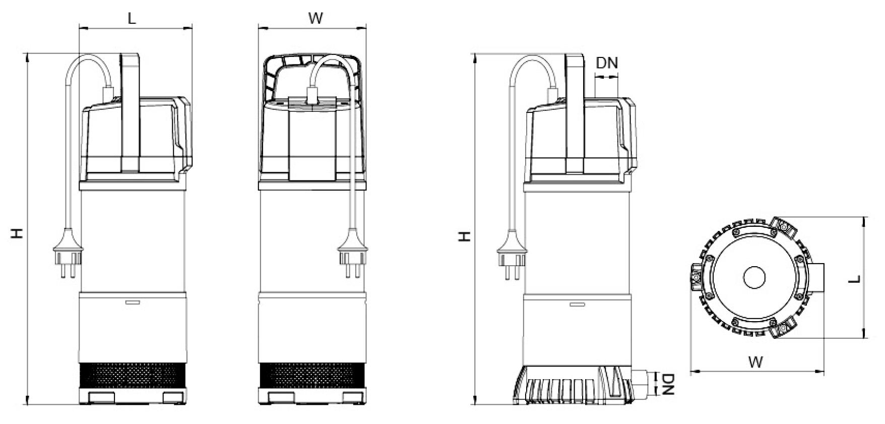 | Models | DN | L | W | H |