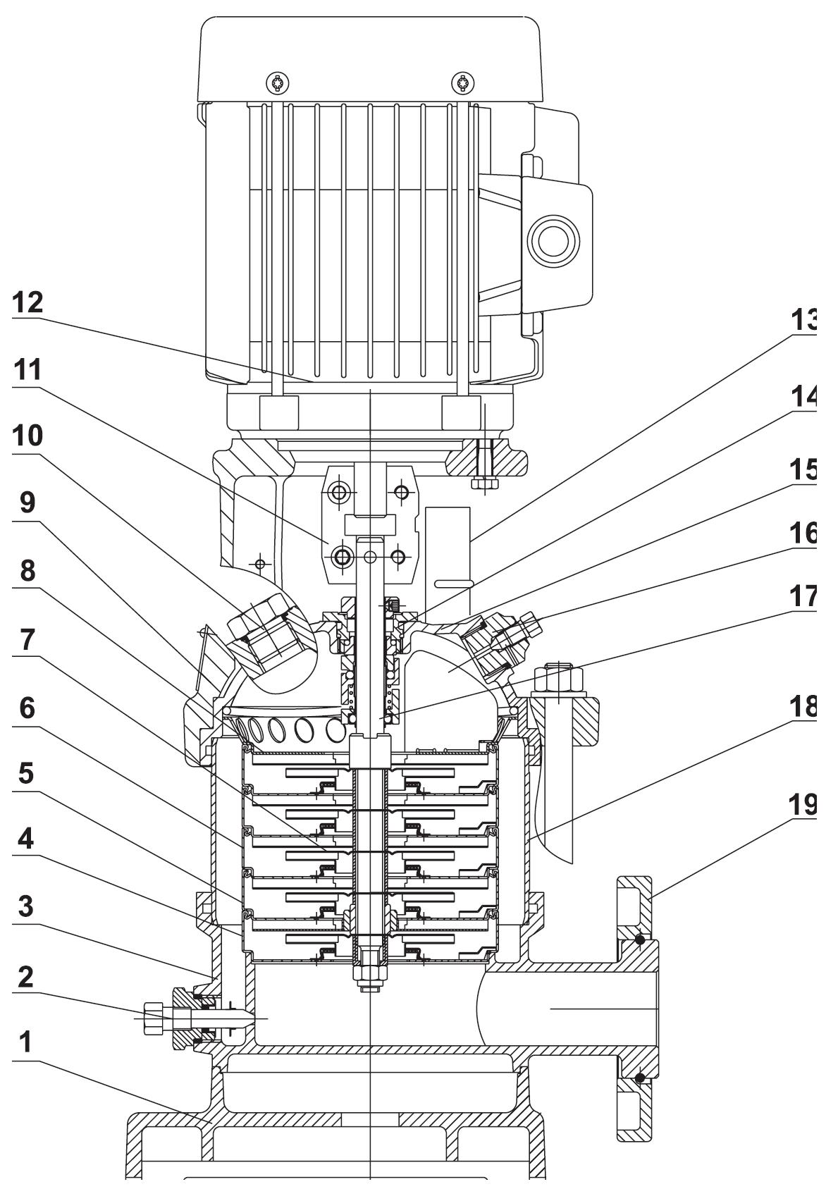 | 17 | Pump shaft | AISI 304 stainless steel | |